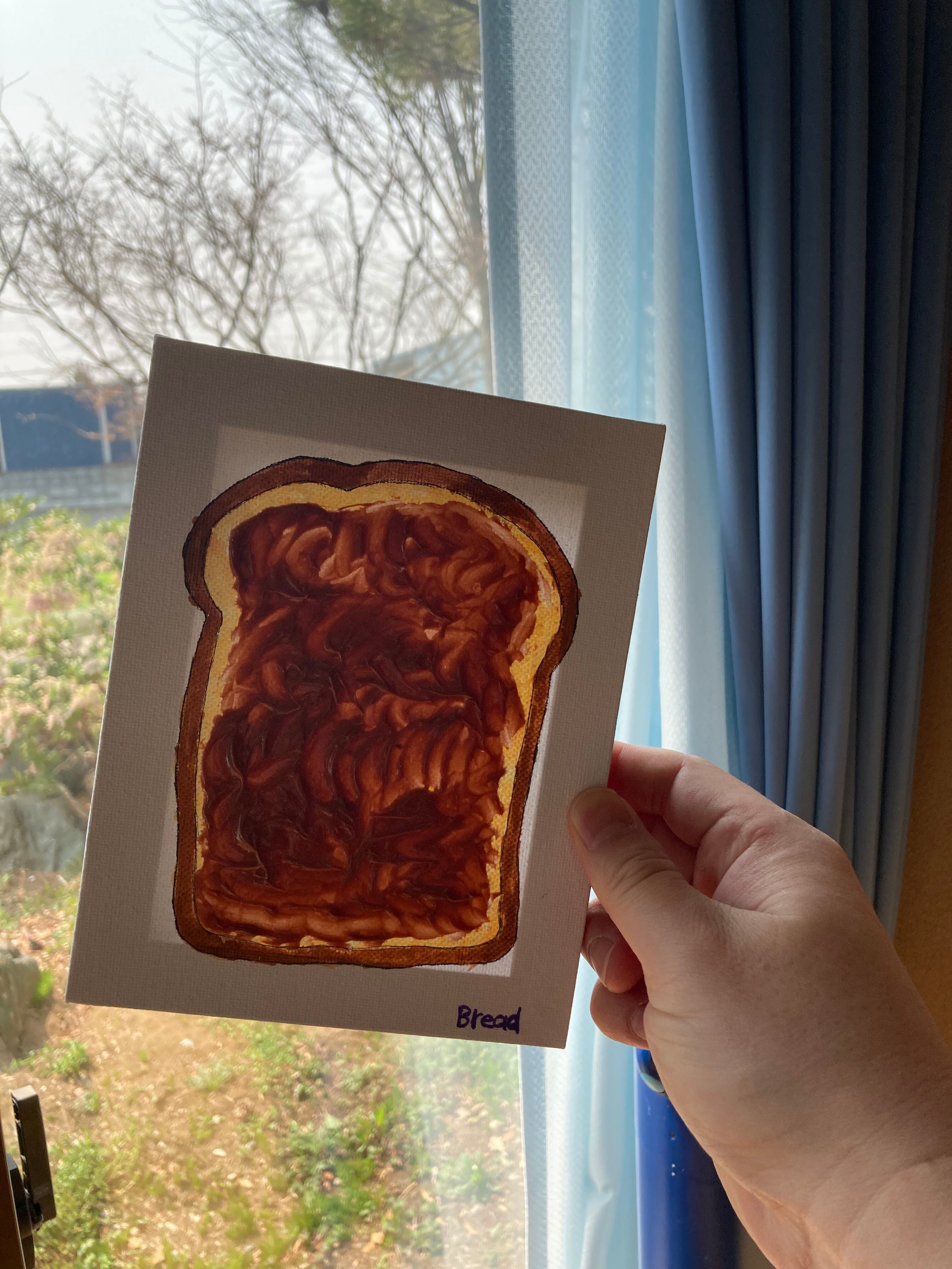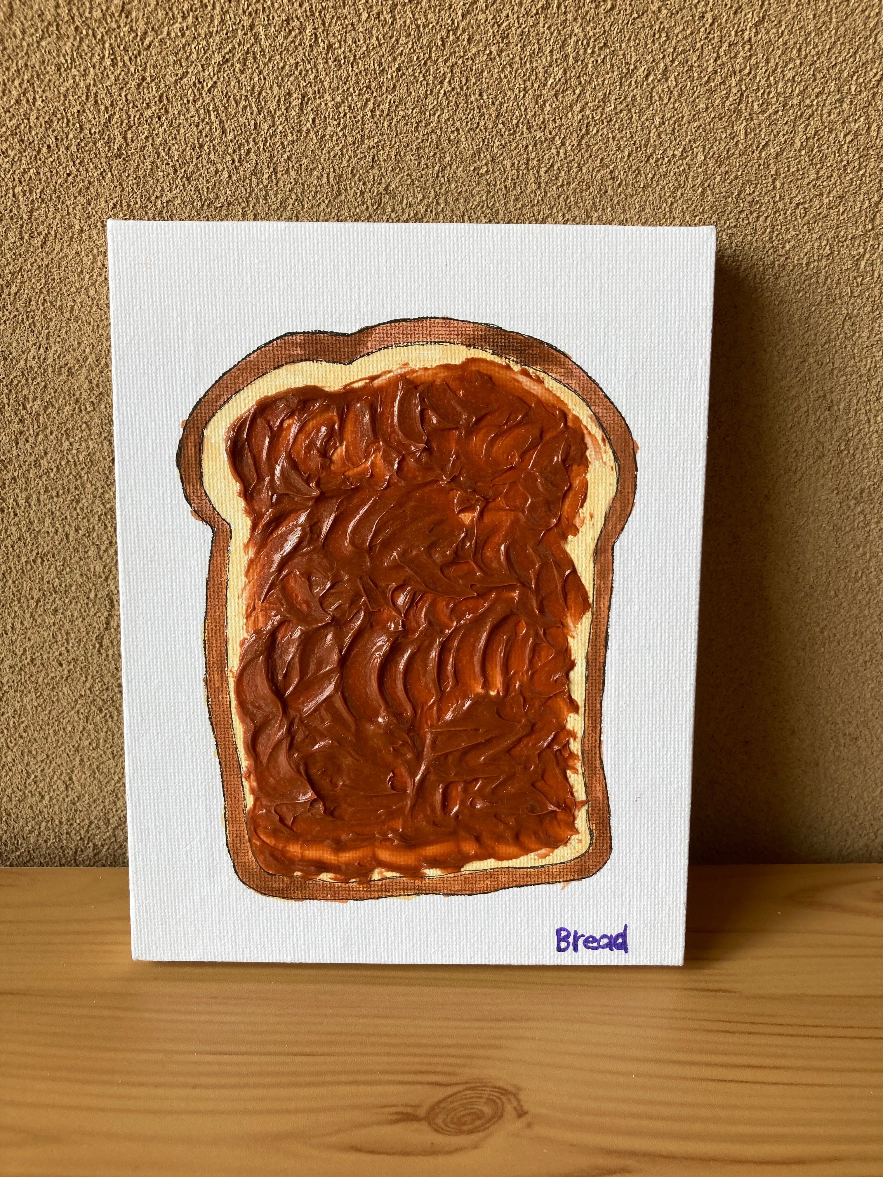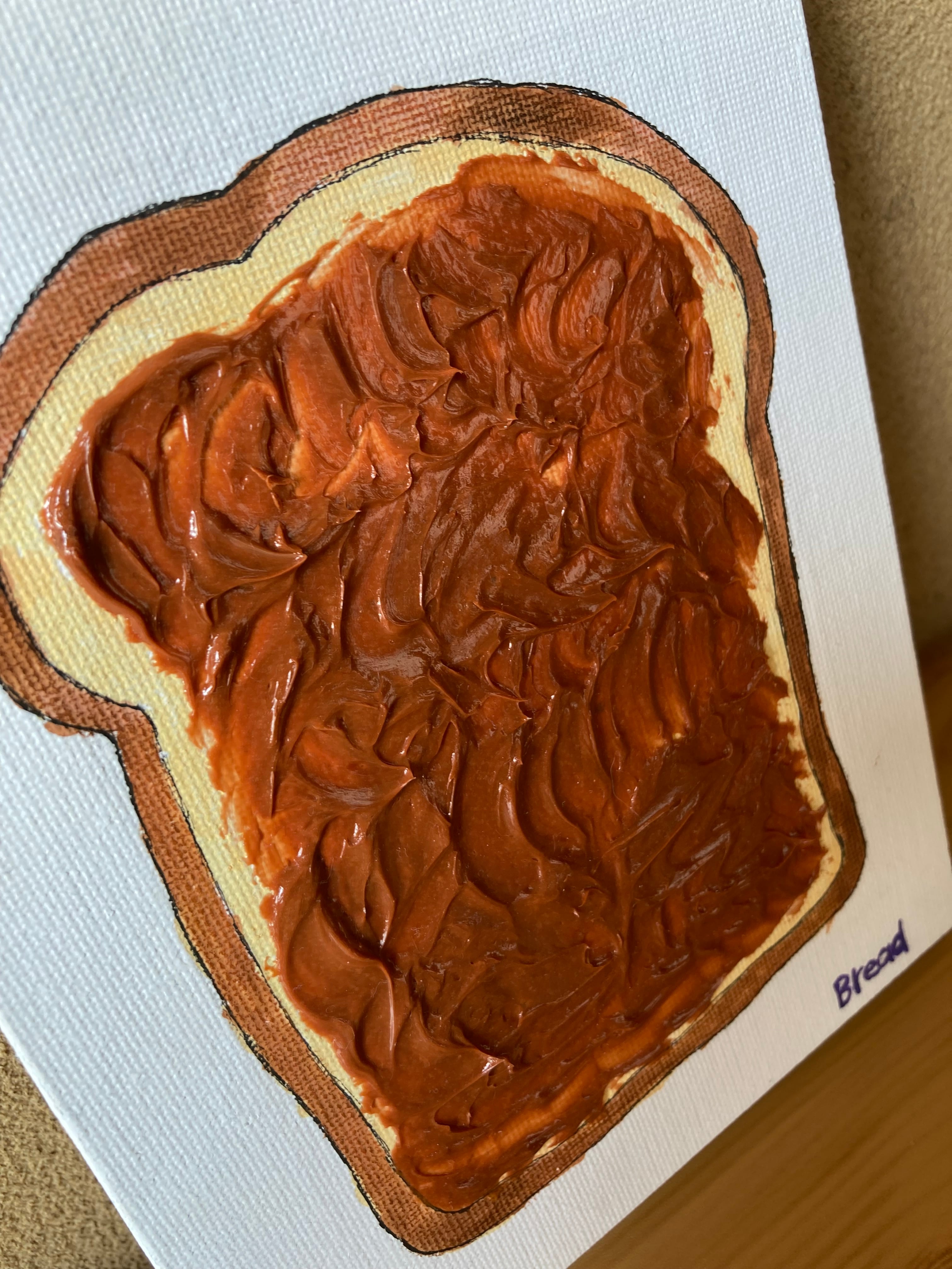 パンに塗られているジャムがメディウムのため立体感とジャムの質感が出ており、おいしそうに作られています。