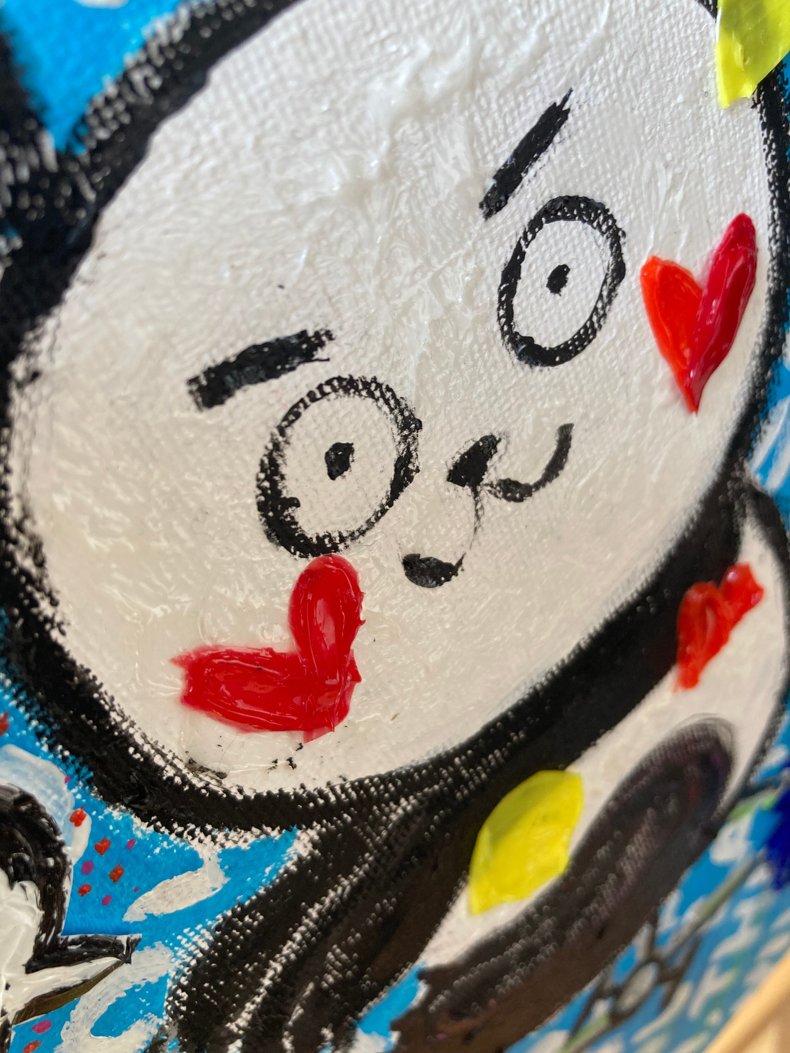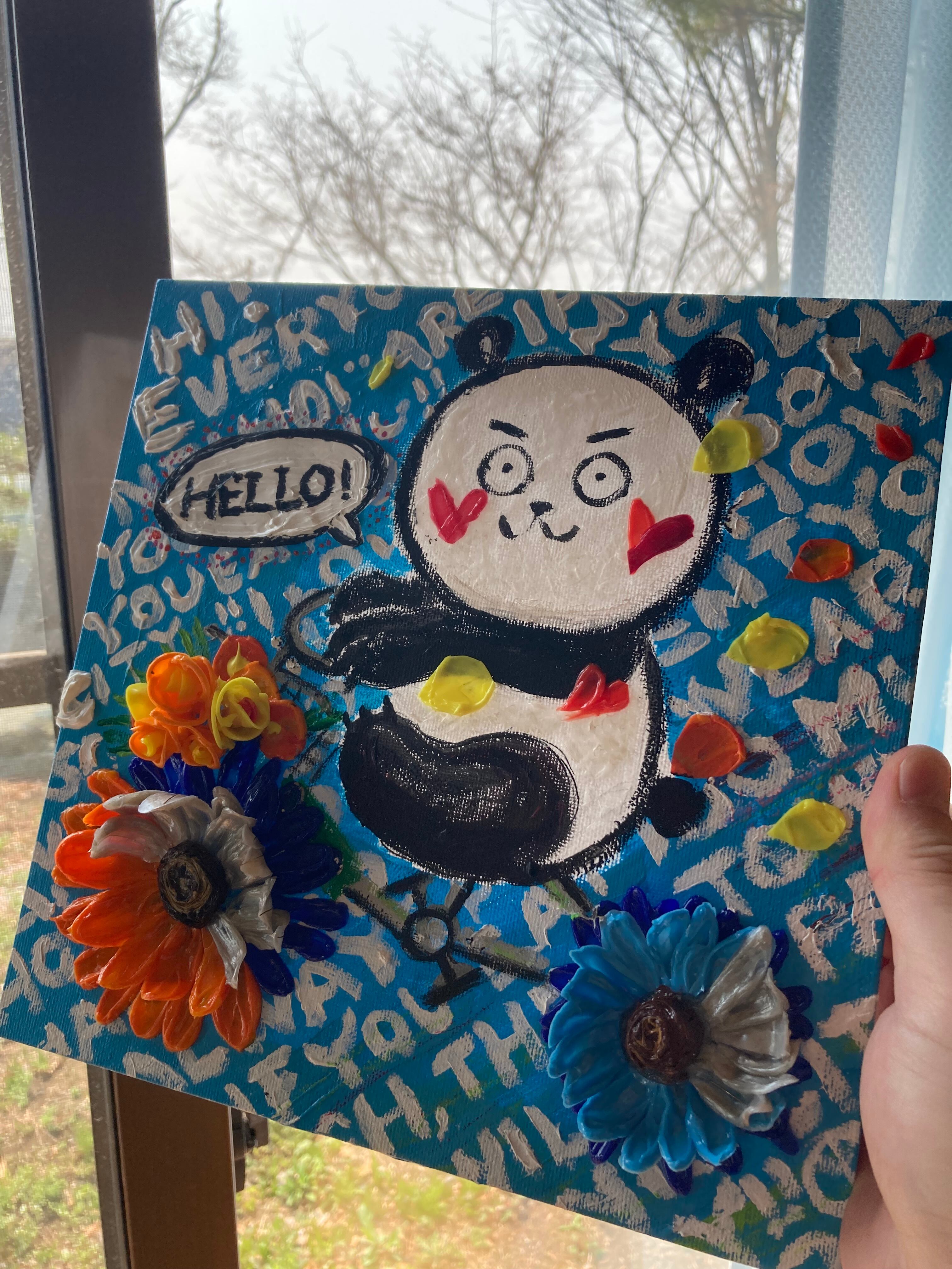 愛らしいパンダがお花の自転車に陽気に乗ってます。