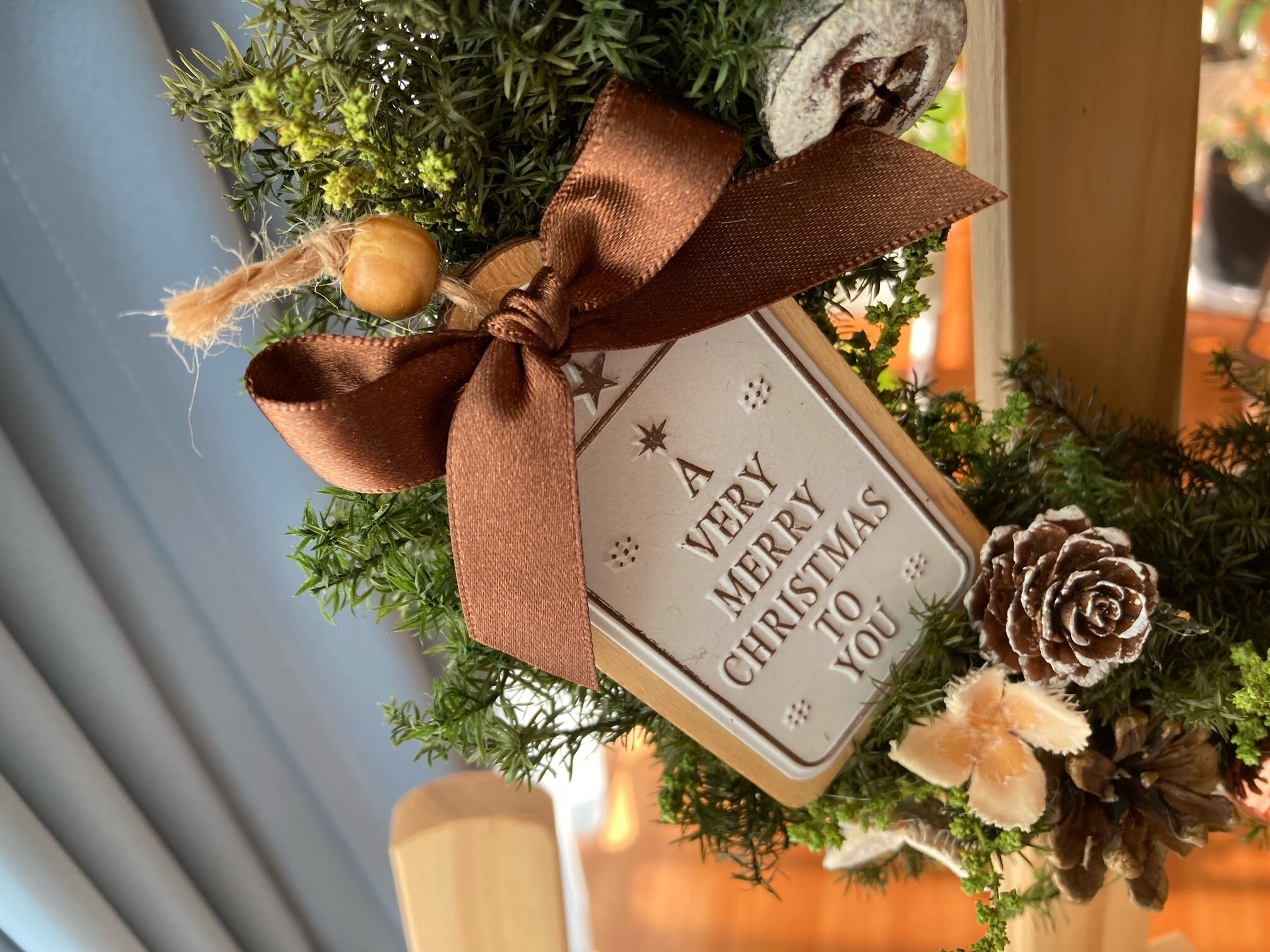 ・シックなホワイトの色合いを基調とし、松ぼっくりや木の実など様々なアクセントが施されています。
