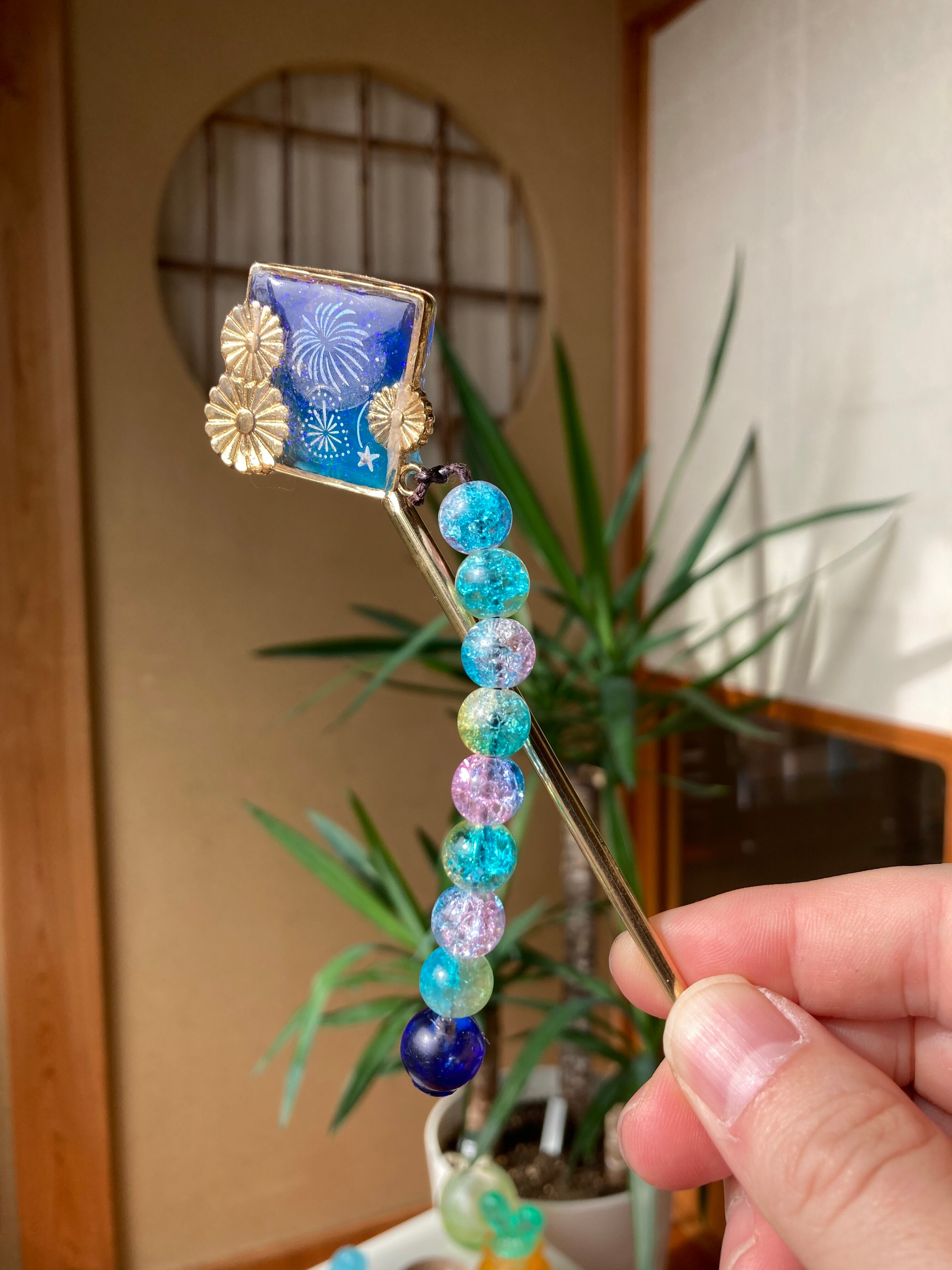 お団子アップに刺して楽しんでみてはいかがでしょう。