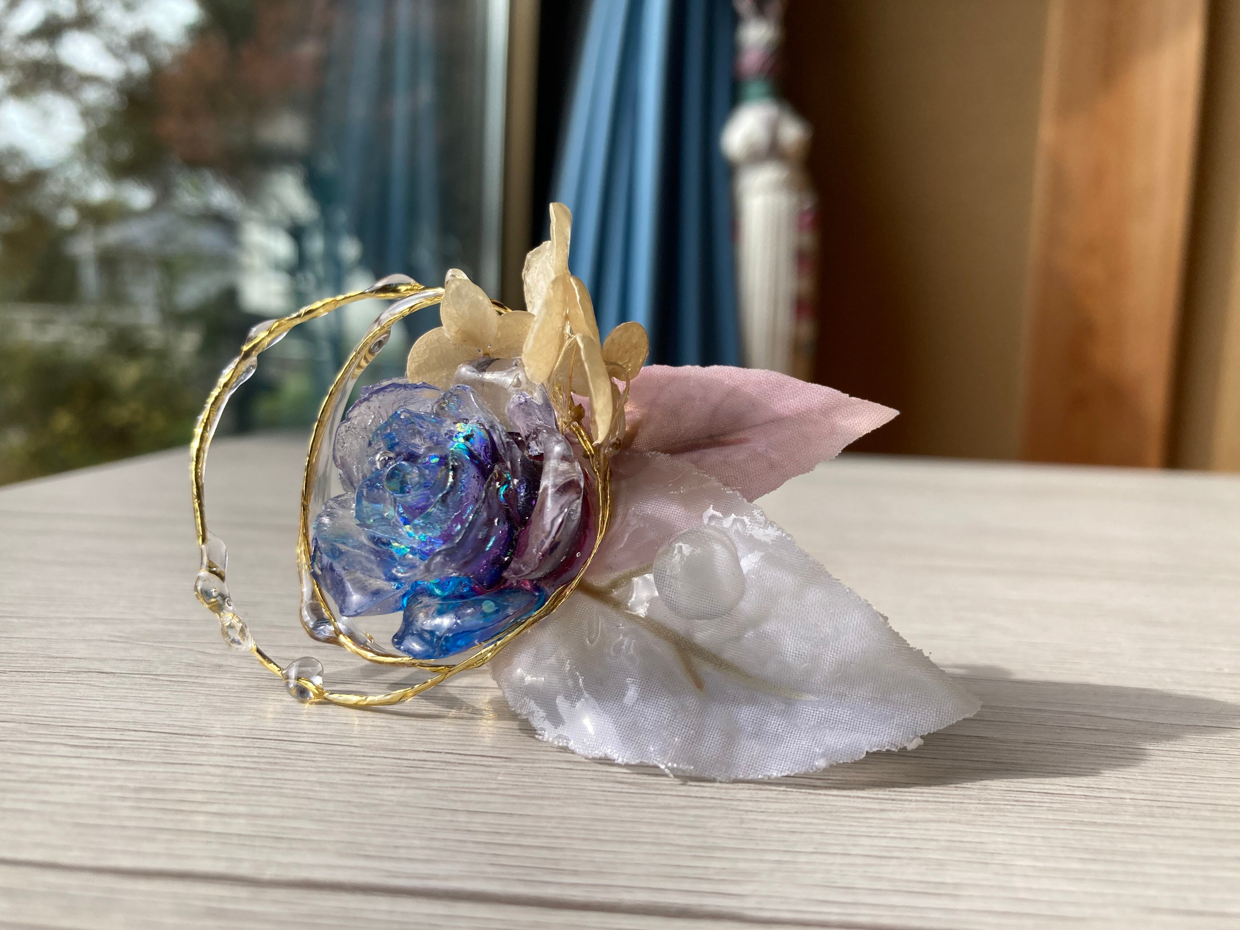 ・レジン+ワイヤーフレーム+ドライフラワー+造花