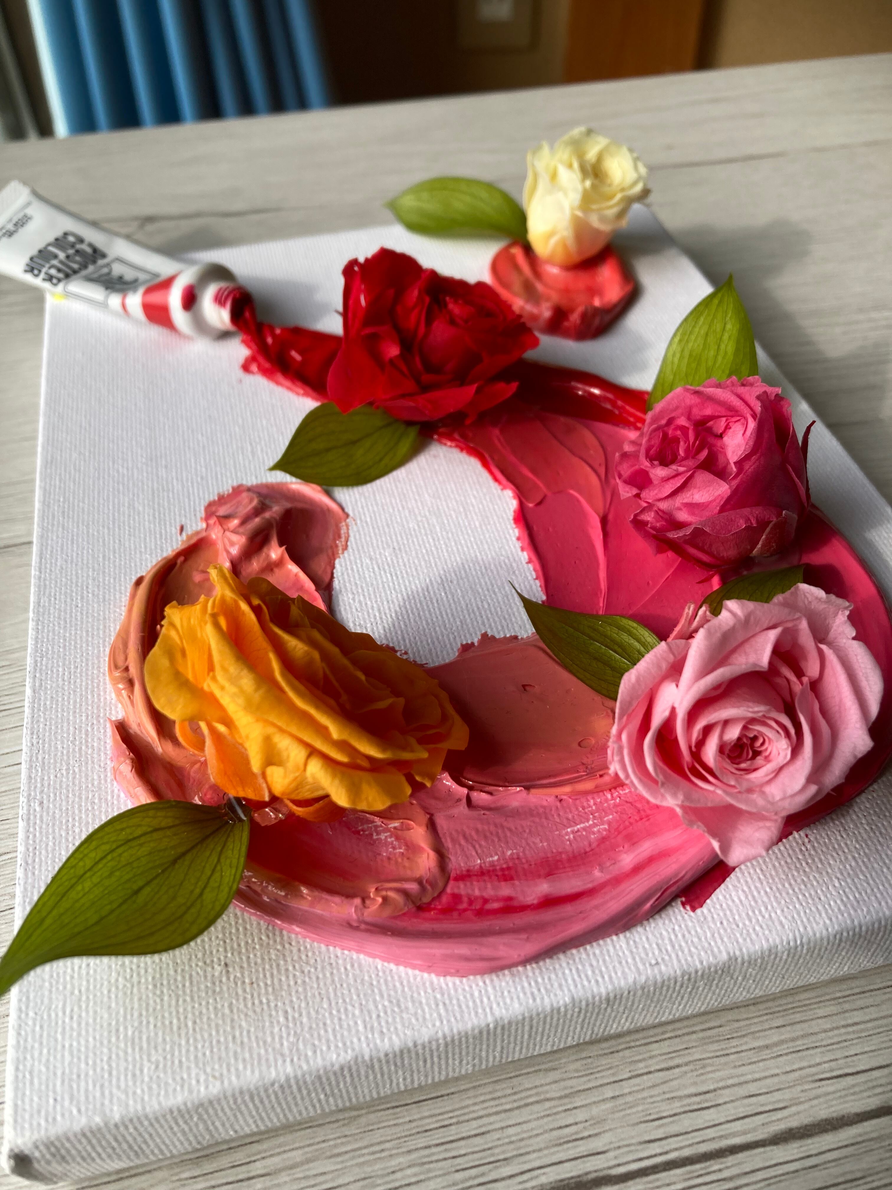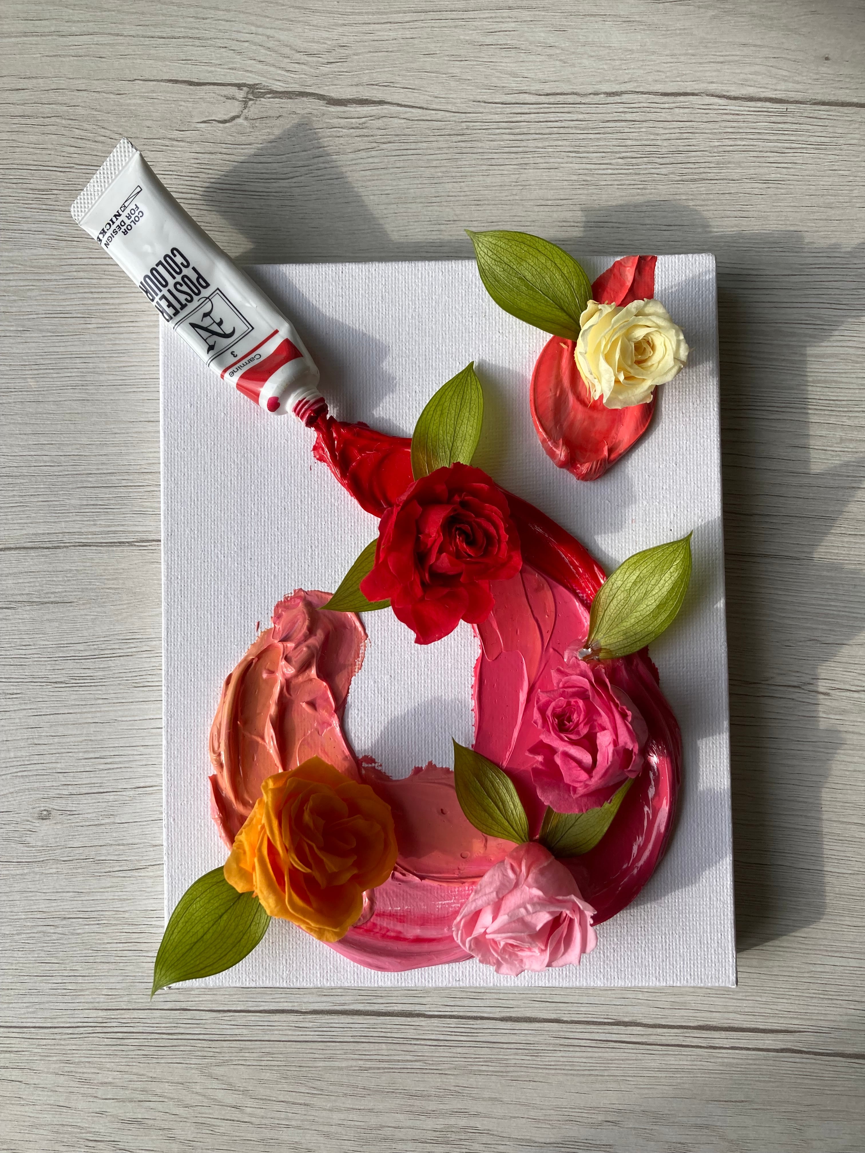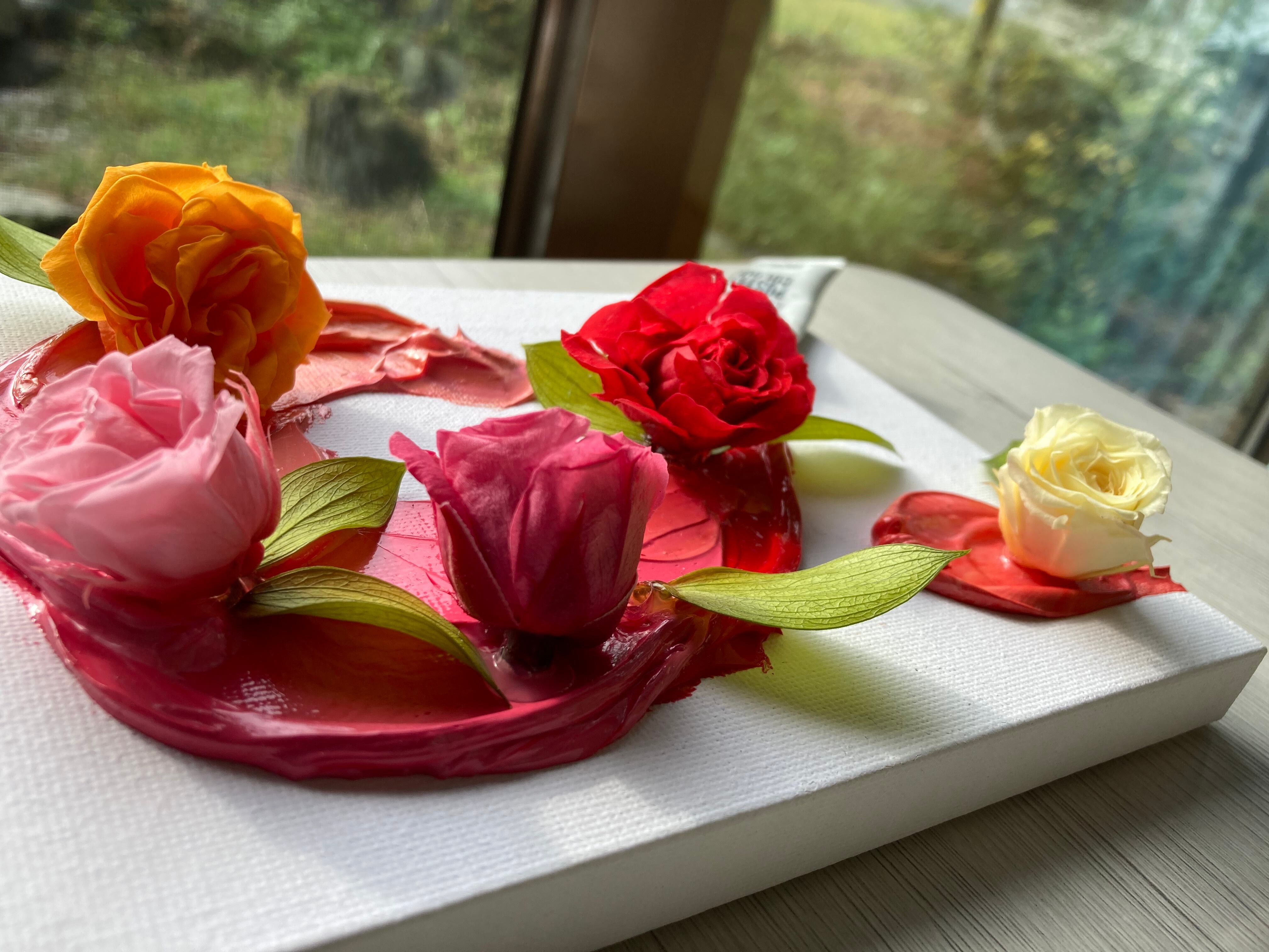 使い切った絵の具からの発想が美しさと楽しさを感じさせます。