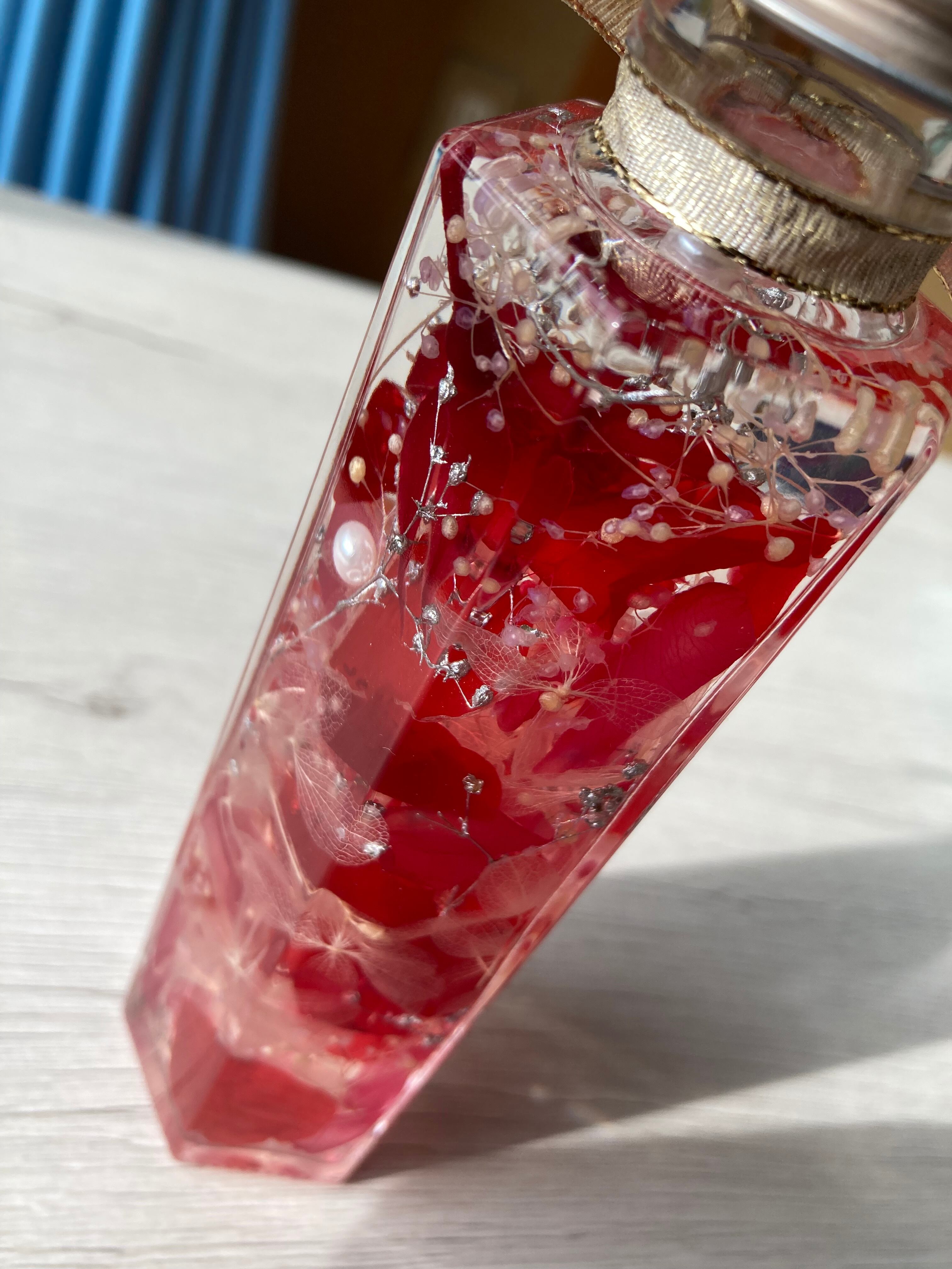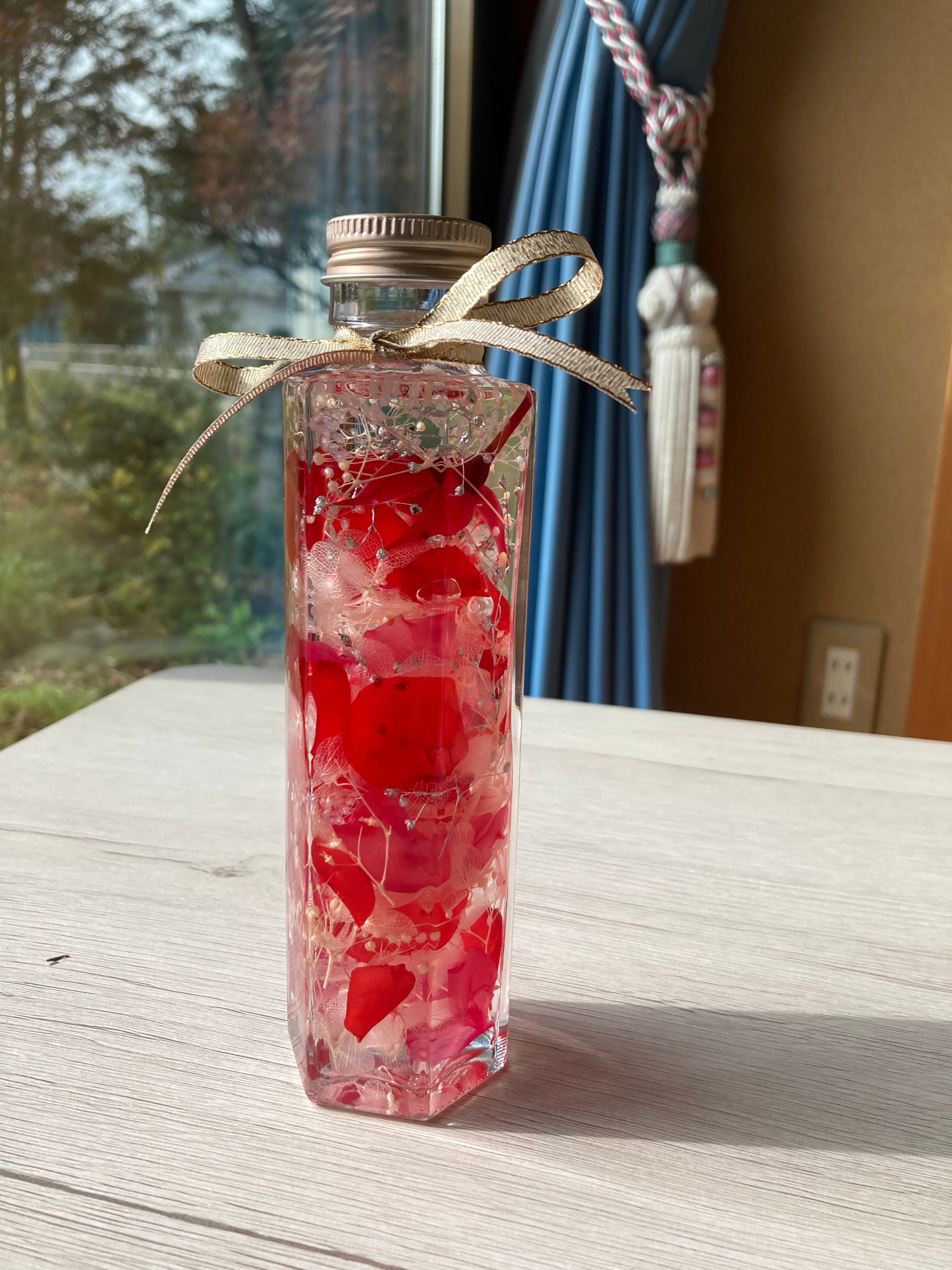 綺麗なドライフラワーを惜しみなく使ったハーバリウム作品です。